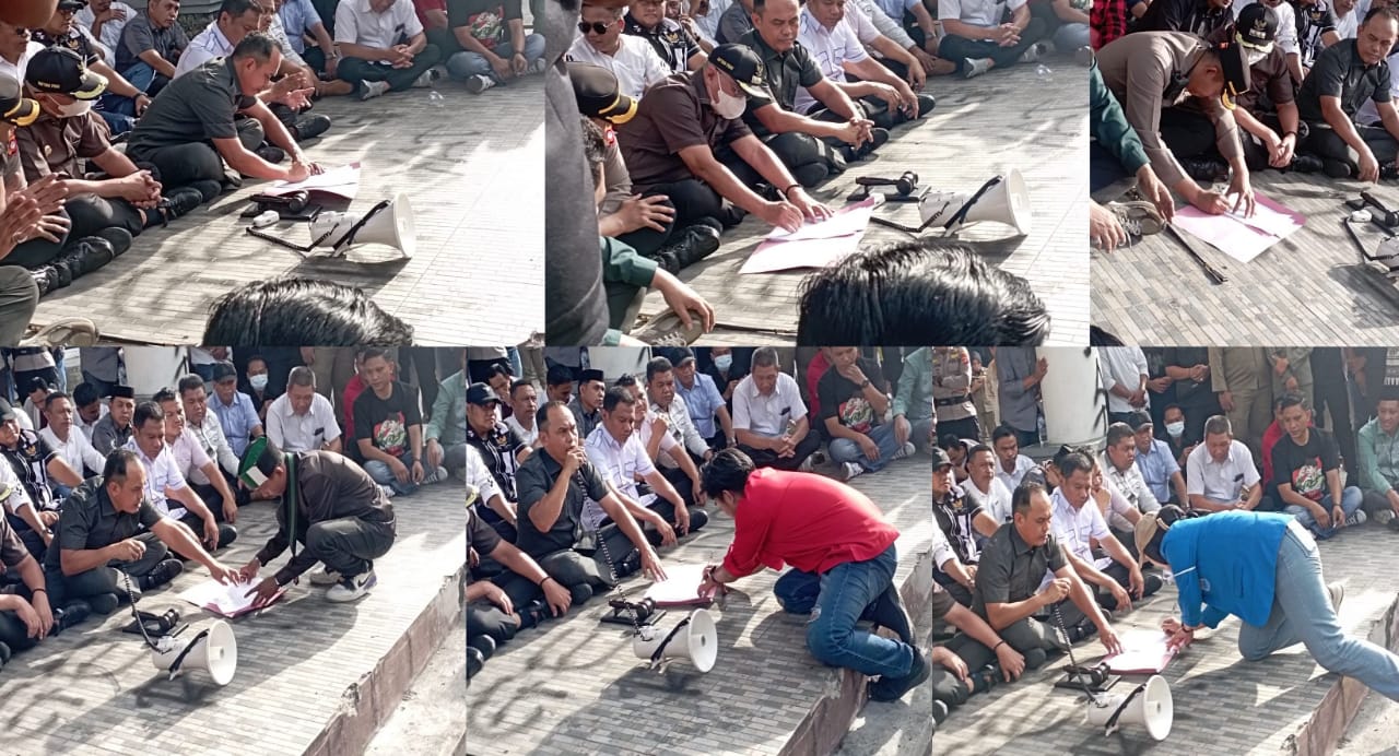 Setelah Bupati Gorontalo, Sofyan Puhi, 40 anggota DPRD Kabupaten Gorontalo, serta Kapolres Gorontalo, AKBP Ki Ade Bagus Tri hadir ditengah-tengah masa aksi. Maka, fakta integritas itu dapat ditandatangani bersama.