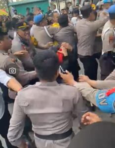 Tangkapan layar arogansi oknum polisi terhadap massa aksi yang melaksanakan unjuk rasa pada saat pelantikan DPRD Kabupaten Gorontalo.