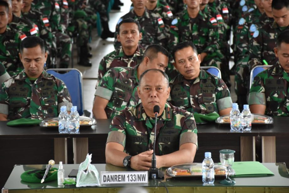 Setelah selesai mengikuti pengarahan Pangdam XIII/Merdeka secara vicon, Danrem 133/NW Brigjen TNI Totok Sulistyono, S.H., M.M., M.I.P mengatakan bahwa latihan penyiapan ini bertujuan untuk memberikan pengetahuan tentang misi perdamaian PBB, serta memahami kondisi terakhir daerah misi. Sehingga diharapkan mampu bertindak sesuai dengan SOP dan ROE serta aturan-aturan yang diberlakukan oleh PBB.