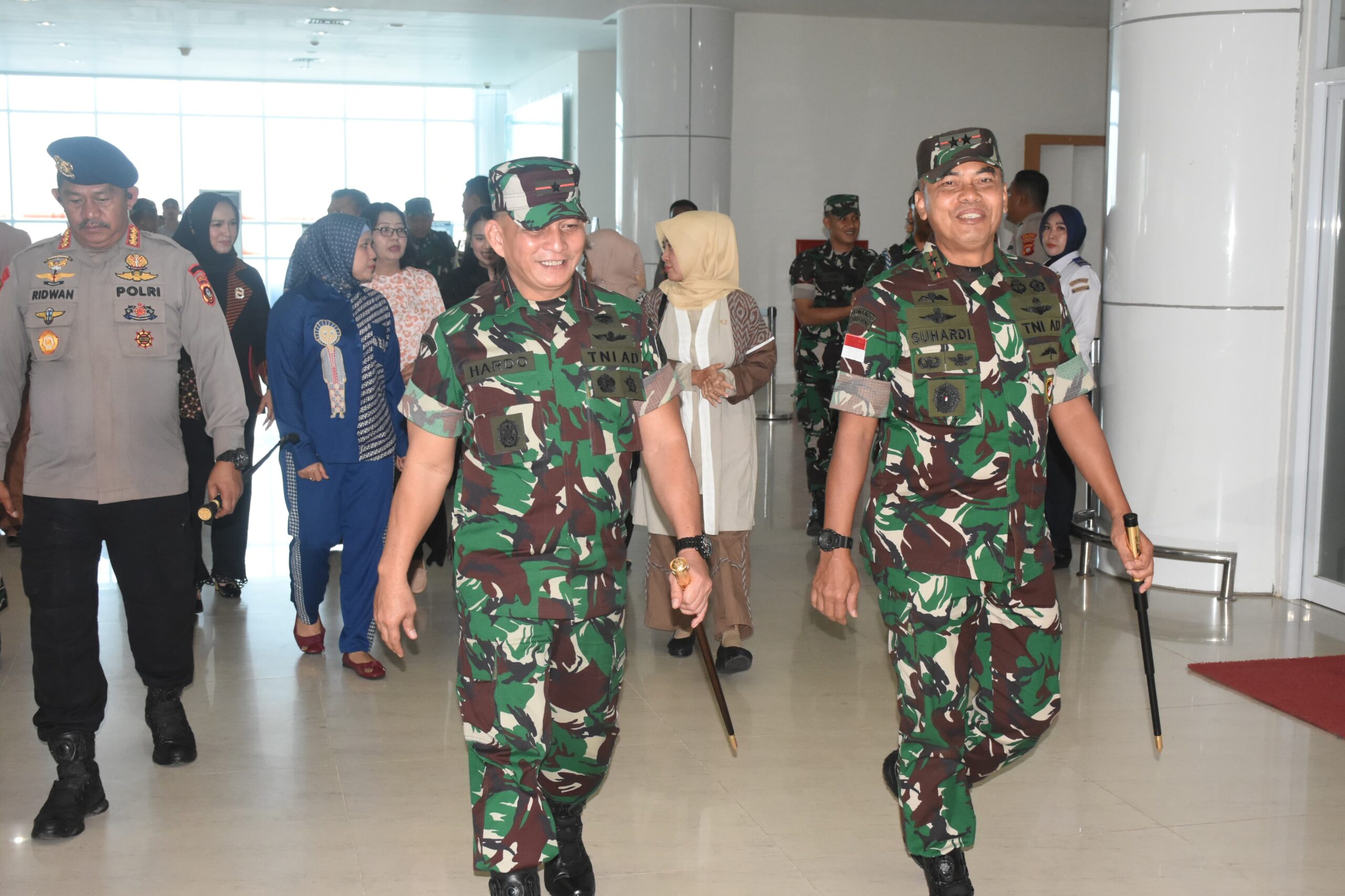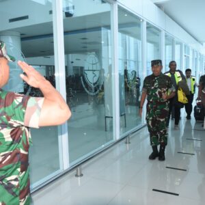 RELATIF.ID, GORONTALO__Komandan Korem (Danrem) 133/Nani Wartabone Brigjen TNI Hardo Toga Parlindungan Sihotang menyambut kedatangan Pangdam XIII/Merdeka Mayjen TNI Suhardi, S.I.P., bersama Ketua Persit KCK Daerah XIII/Merdeka Ny. Evi Suhardi di Bandara Djalaludin Gorontalo Desa Tolotio Kec. Tibawa Kab. Gorontalo. Selasa (03/06/2025).