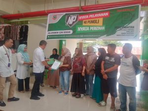 RELATIF.ID, GORONTALO__Dinas Penanaman Modal Dan Pelayanan Terpadu Satu Pintu (PM-PTSP) Kabupaten Gorontalo terus menjalankan kegiatan pelayanan Perizinan, dimana pelayanan dilakukan langsung mendatangi para pelaku usaha yang ada di Pasar Modern Limboto. Rabu (08/11/2023).