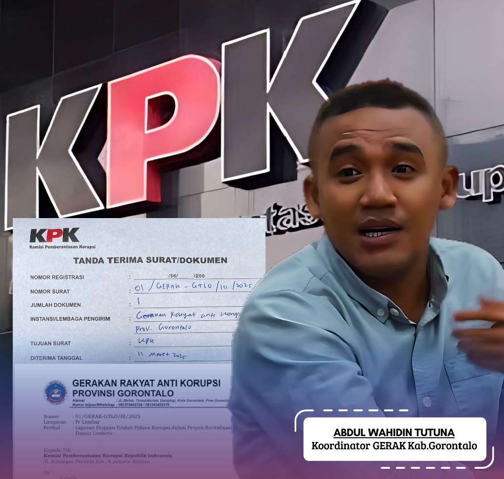 RELATIF.ID, GORONTALO__Gerakan Rakyat Anti Korupsi (GERAK) Provinsi Gorontalo resmi melaporkan dugaan tindak pidana korupsi dalam proyek revitalisasi Danau Limboto ke Komisi Pemberantasan Korupsi (KPK) Republik Indonesia pada Senin, 11 Maret 2025. Laporan ini juga ditembuskan ke Kejaksaan Agung, Kepolisian Republik Indonesia, serta Presiden Republik Indonesia sebagai bentuk keseriusan dalam mengawal dugaan pelanggaran anggaran negara.