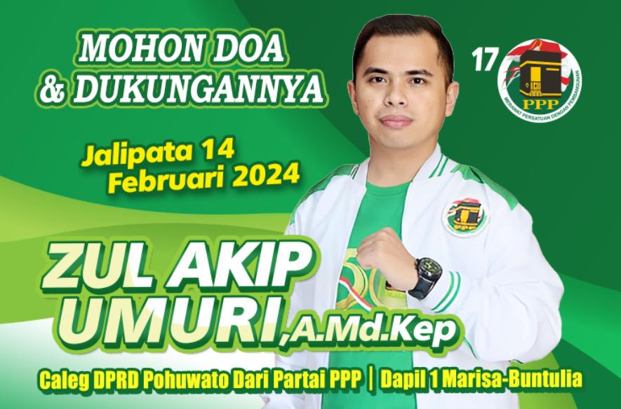 RELATIF.ID, POHUWATO – Bakal calon Legislatif (Bacaleg) Partai Persatuan Pembangunan (PPP), Kabupaten Pohuwato, Zul Akip Umuri, A.MD.Kep, saat ini sudah mulai memanaskan mesin politiknya untuk bertarung Pada Pemilihan Legislatif (Pileg) 2024 mendatang di Daerah Pemilihan (Dapil) I Marisa-Buntulia.