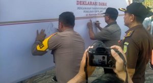 Melalui kesempatan ini juga dilaksanakan penandatanganan pemilu Damai oleh jajaran Forkopimda, KPU, Bawaslu dan seluruh peserta pemilu. Selasa (22/11/2023).