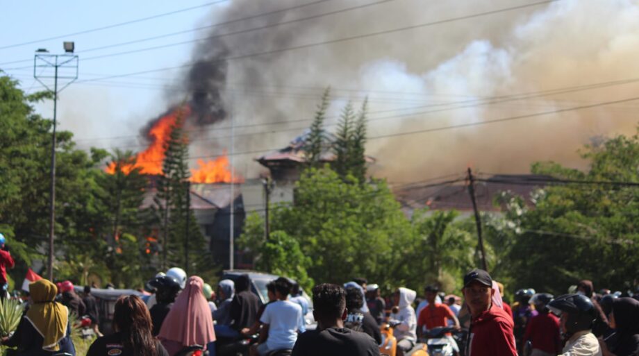Berdasarkan hasil liputan yang dilakukan oleh awak media ini, Ratusan massa aksi mengamuk dengan merusak dan membakar kantor Bupati usai menggelar aksi demonstrasi, pada Kamis, (21/9/2023).