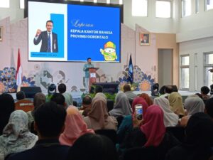 RELATIF.ID, GORONTALO__Pengresmian kantor Bahasa di hadiri langsung Sekretaris Jenderal Kementerian Pendidikan, Kebudayaan, Riset, dan Teknologi, Suharti, Rabu (08-05-2024). Peresmian tersebut ditandai dengan penandatanganan prasasti oleh Sekda Provinsi Gorontalo.