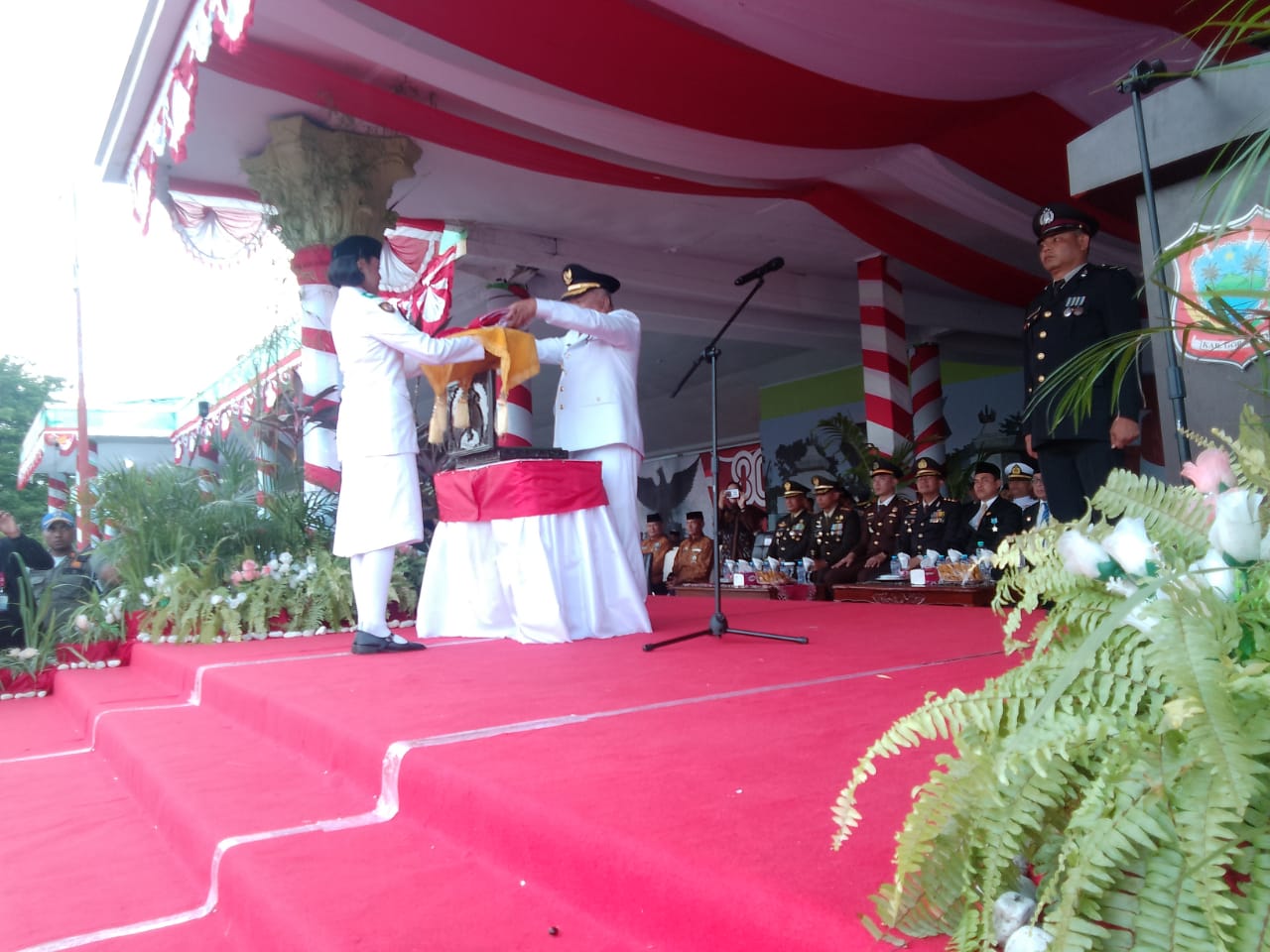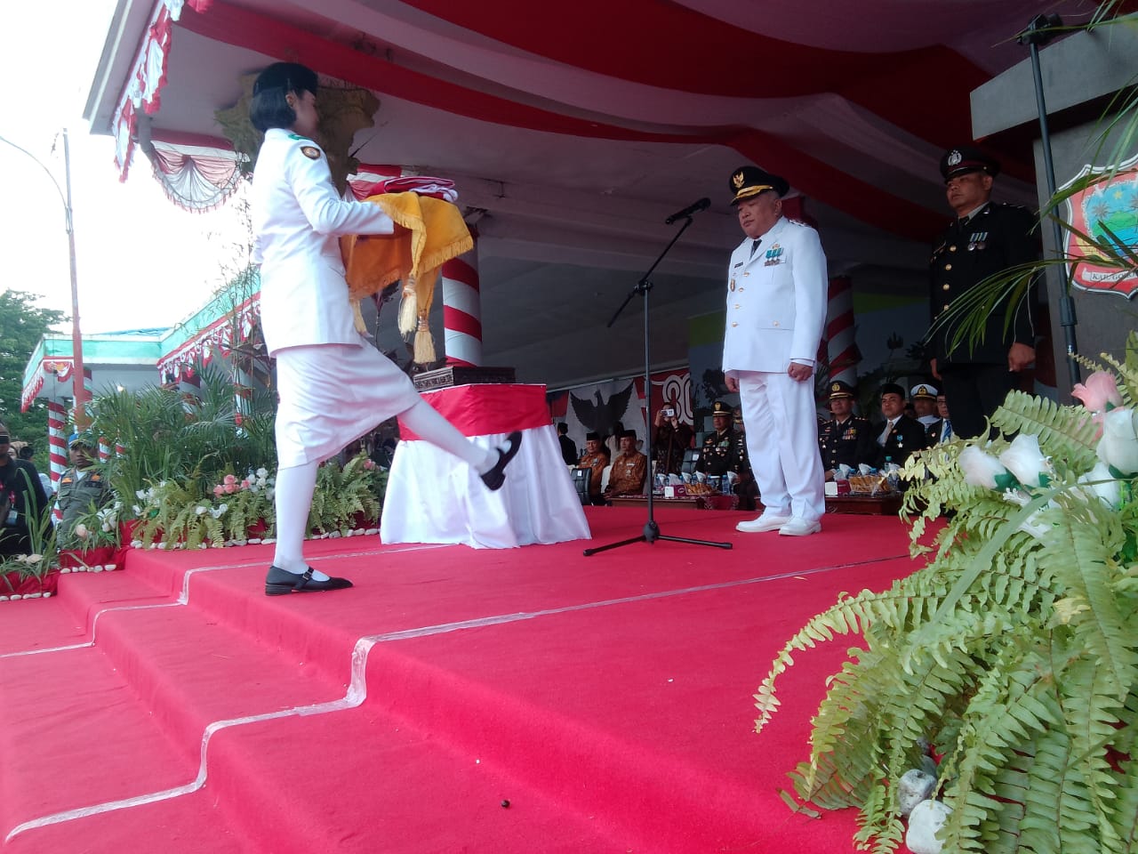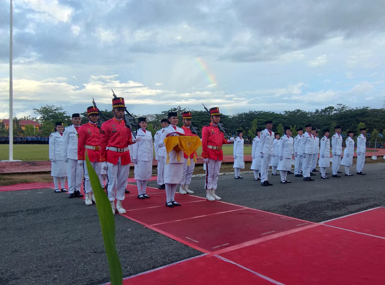 Ia sukses menjalankan tugas sebagai pembawa baki dalam upacara peringatan Hari Ulang Tahun ke-80 Republik Indonesia tingkat Kabupaten Gorontalo, Minggu sore (17/8/2025).
