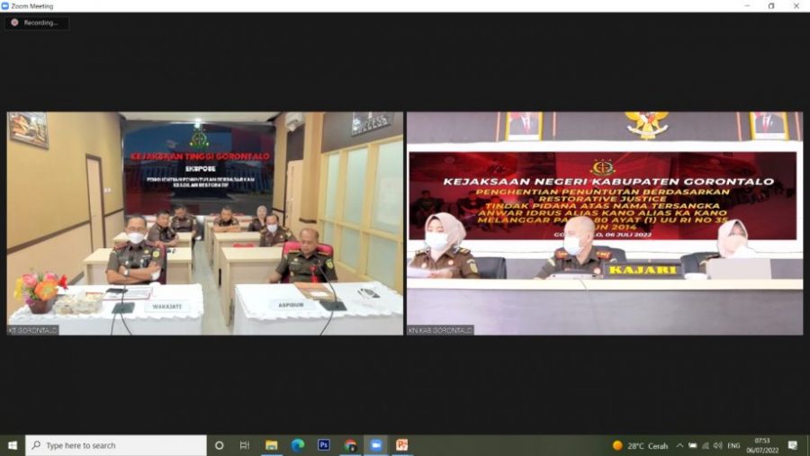 Restorative Justice sendiri berlangsung di Ruang Video Confrence Kejaksaan Negeri Kabupaten Gorontalo, Rabu (06/07/2022).