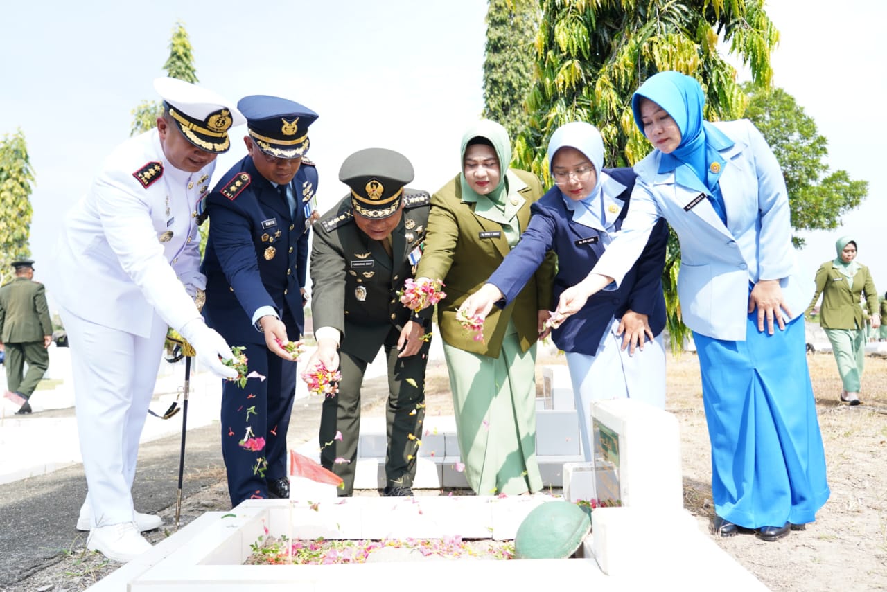 Wujud Sinergi Tiga Matra Upacara ziarah berlangsung khidmat, diawali dengan penghormatan kepada arwah para pahlawan, dilanjutkan dengan mengheningkan cipta, dan peletakan karangan bunga di tugu makam pahlawan oleh Kasrem 133/NW.