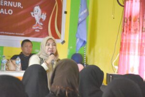 Selain Sowan S. Dehi, anggota KPU Kabupaten Gorontalo Divisi Hukum dan Pengawasan, Agustina Bilondatu juga memberikan materi, menekankan pentingnya partisipasi setiap warga negara dalam memilih sebagai wujud implementasi kedaulatan rakyat serta untuk menentukan arah kebijakan pembangunan daerah.