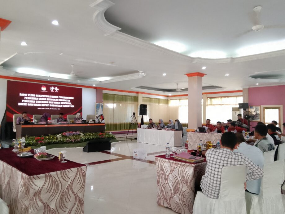 RELATIF.ID, GORONTALO – Komisi Pemilihan Umum (KPU) Kabupaten Gorontalo melaksanakan rekapitulasi hasil perolehan suara Pilkada 2024 tingkat kabupaten pada Selasa (3/12/2024).