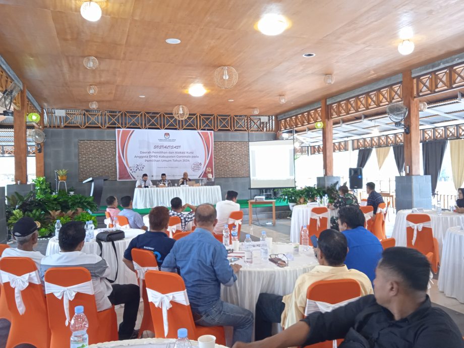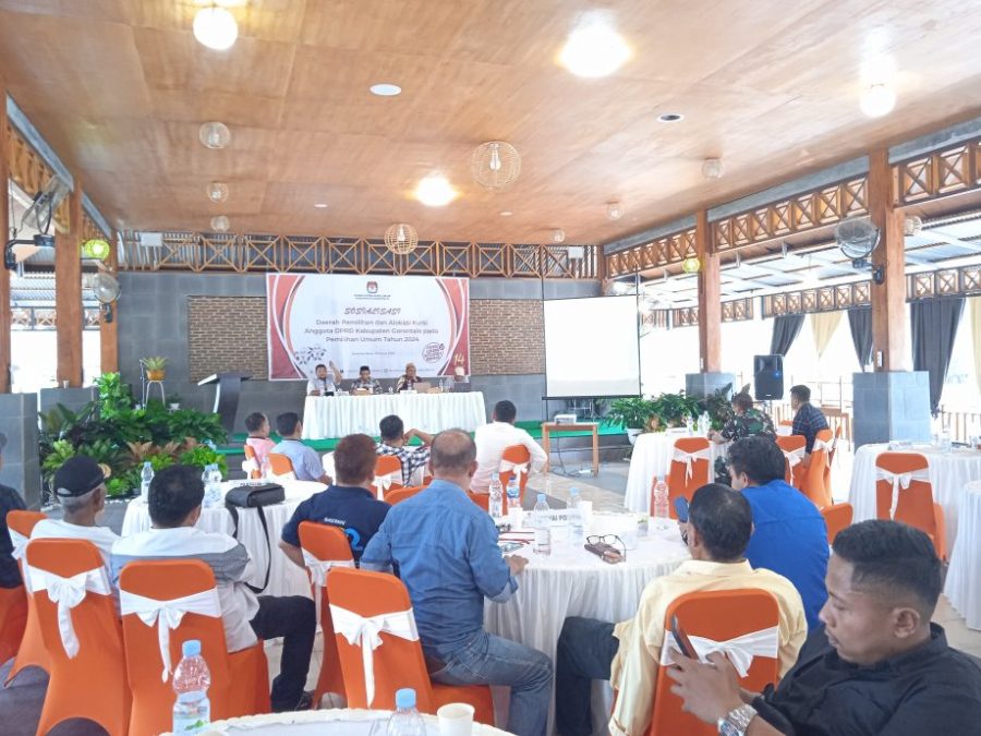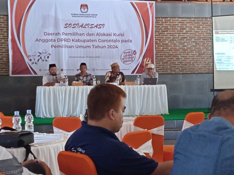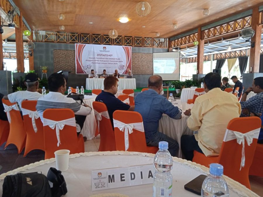 RELATIF.ID, GORONTALO__Komisi Pemilihan Umum (KPU) Kabupaten Gorontalo menggelar sosialisasi daerah pemilihan dan alokasi kursi Anggota DPRD Kabupaten Gorontalo pada Pemilihan Umum Tahun 2024 mendatang.