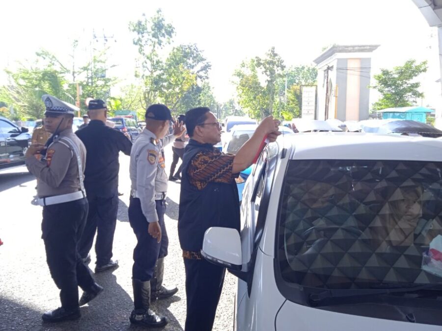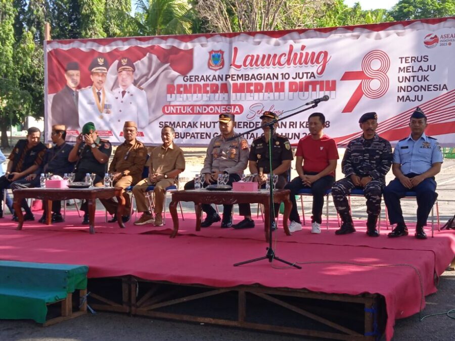RELATIF.ID, GORONTALO__Bupati Kabupaten Gorontalo, Prof. Nelson Pomalingo apresiasi Kesbangpol Kabupaten Gorontalo yang telah melaksanakan kegiatan Launching Gerakan Pembagian 10 Juta Bendera Merah Putih Dalam Rangka Menyambut dan Merayakan Hari Ulang Tahun Ke-78 Republik Indonesia, Selasa (01/08/2023).