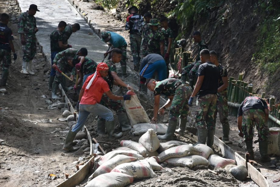 Dalam pengerjaan jalan Rabat Beton penghubung Desa Tulabolo ke Desa Tulabolo Timur ini sudah tampak terlihat, ratusan prajurit bersama warga bergotong royong mengerjakan pengecoran jalan Rabat Beton.