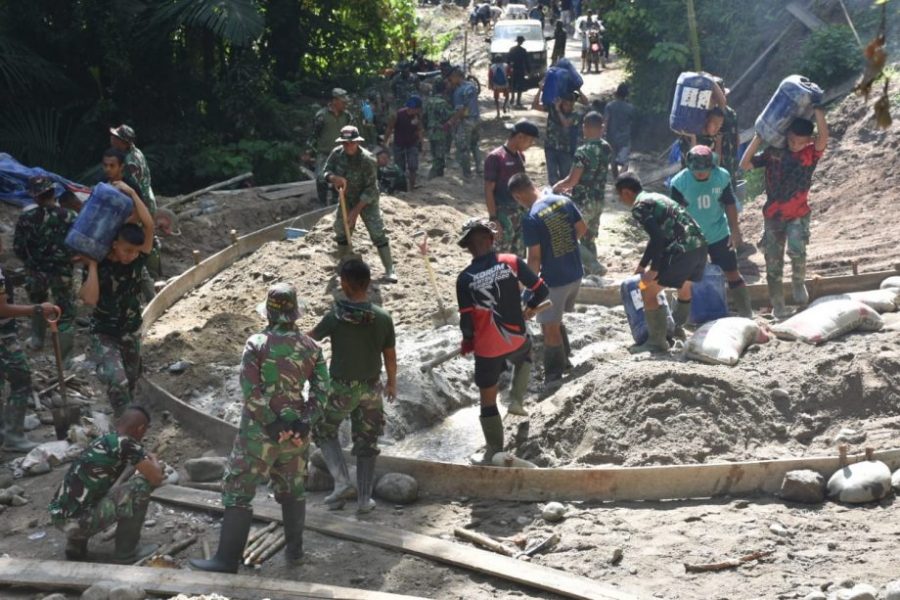 “Dan kita perlu sedikit berhati hati dikarenakan medan yang kita kerjakan merupakan wilayah perbukitan yang terjal,” ujar Serma Rizal Mabuia.