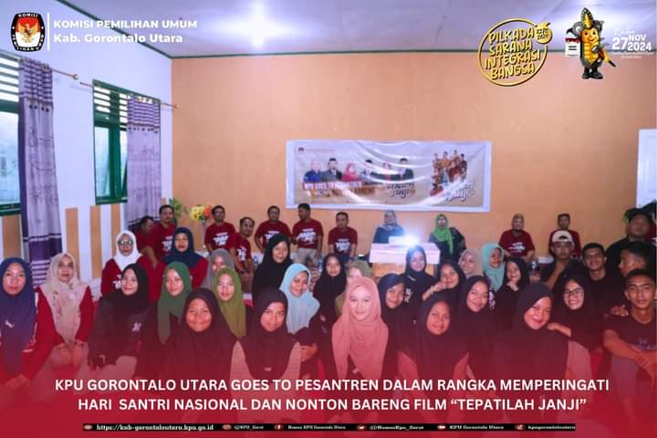 Kegiatan yang bertujuan untuk meningkatkan partisipasi santri dan menginspirasi masyarakat untuk berkontribusi pada pilkada mendatang, turut dihadiri oleh Anggota KPU Kabupaten Gorontalo Utara, Noval Katili dan Nur Istiyan Harun, beserta jajaran staf dan Kasubbag KPU Kabupaten Gorontalo Utara.