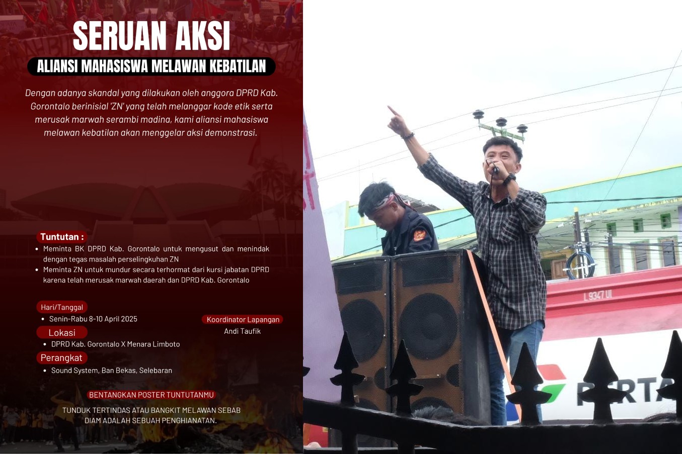Aksi ini akan berlangsung selama tiga hari, mulai 8 hingga 10 April 2025, di depan Gedung DPRD Kabupaten Gorontalo dan Menara Limboto.