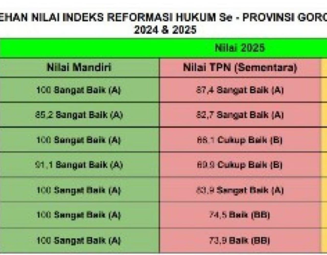 RELATIF.ID, GORONTALO – Pemerintah Kabupaten Gorontalo meraih predikat Istimewa (AA) pada Penilaian Akhir Indeks Reformasi Hukum (IRH) Tahun 2025.