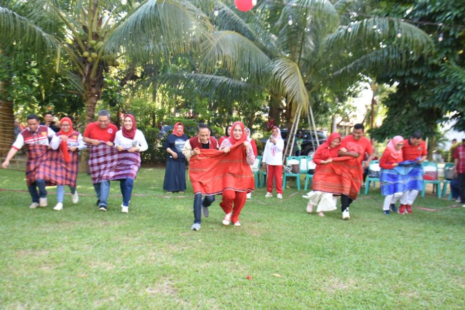 RELATIF.ID, GORONTALO – Para pimpinan Organisasi Perangkat Daerah (OPD) di lingkungan Pemerintah Daerah Kabupaten Gorontalo bersama istri masing-masing turut memeriahkan peringatan Hari Kemerdekaan RI ke-79 dengan beragam permainan tradisional.