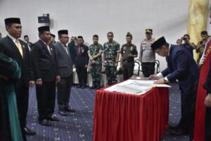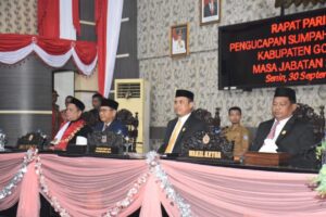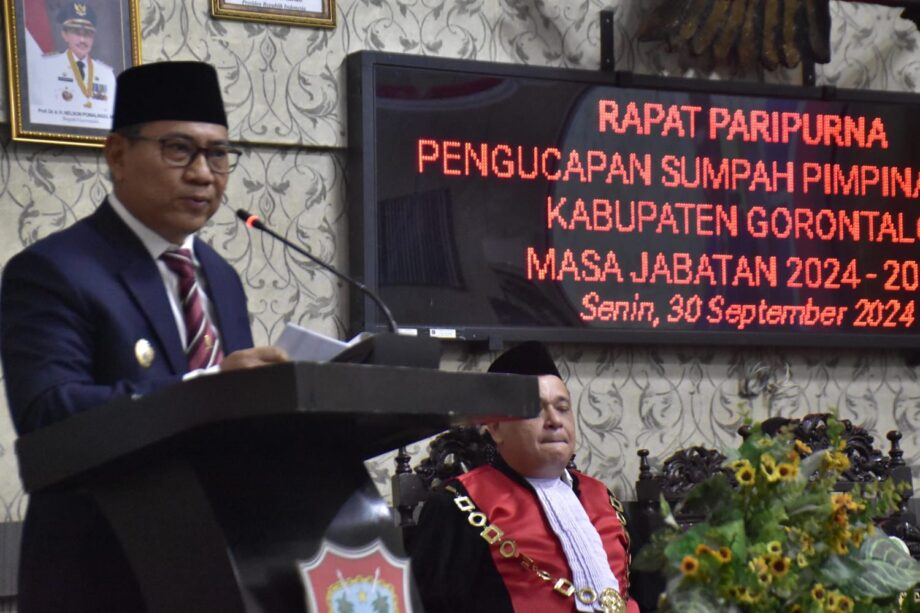 RELATIF.ID, GORONTALO – Penjabat Sementara (Pjs.) Bupati Gorontalo, Syukri Botutihe, menghadiri Rapat Paripurna Dewan Perwakilan Rakyat Daerah (DPRD) Kabupaten Gorontalo dalam rangka Pengucapan Sumpah/Janji Pimpinan DPRD masa jabatan 2024-2029, yang digelar pada Senin (30/09/2024) di Gedung DPRD Kabupaten Gorontalo.