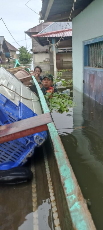 RELATIF.ID, GORONTALO__ Babinsa Kodim 1315-02/Limboto kembali mengevakuasi warga yang terdampak banjir luapan air Danau Limboto, kali ini berlokasi di Kelurahan Hunggaluwa, Kecamatan Limboto Kabupaten Gorontalo, pada Kamis (11/07/2024).