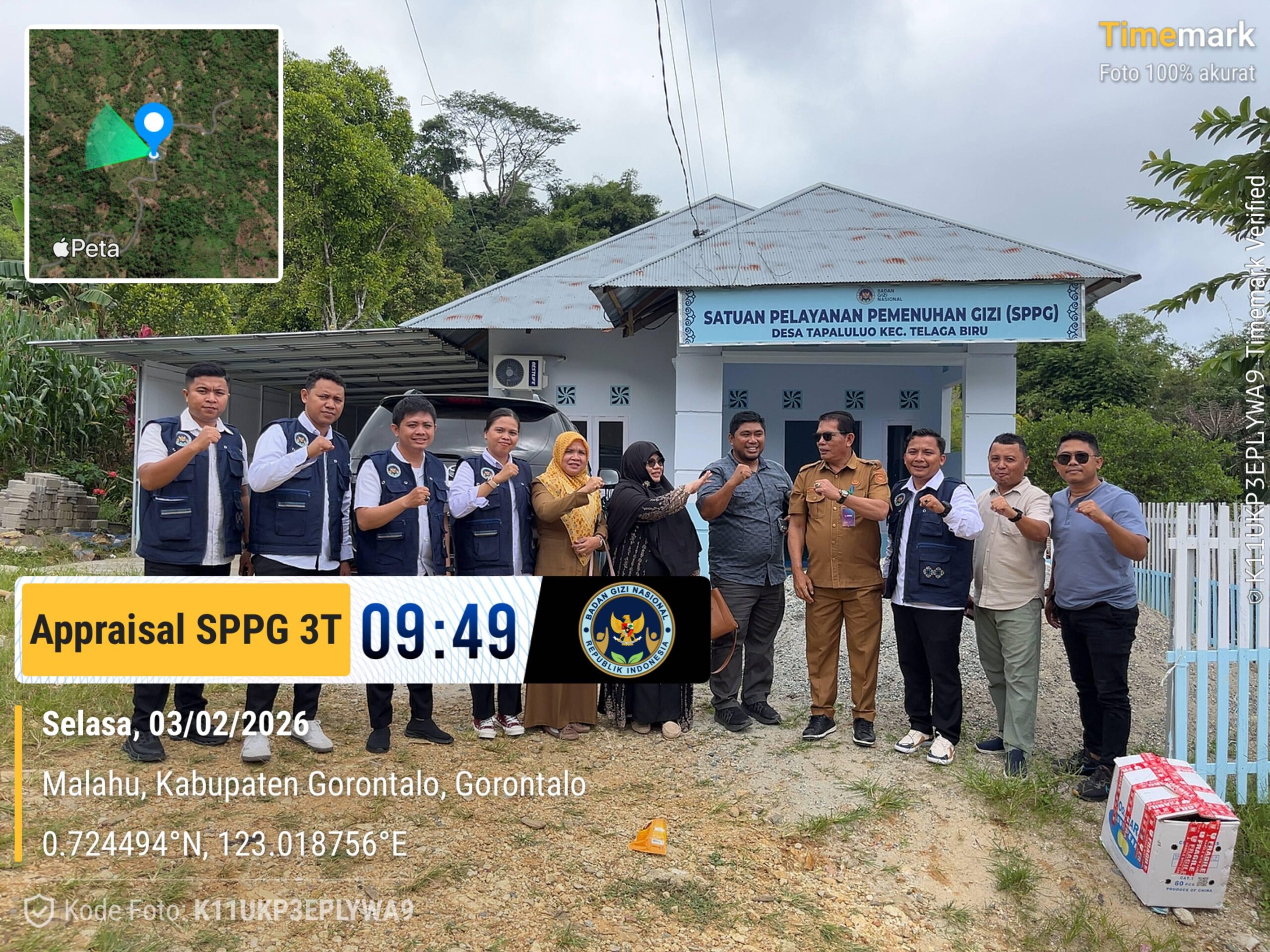Semangat untuk menyukseskan program Presiden tersebut, Arisanti Celine Kukus bersama Kapokcam Telaga, Aliun Arsa Moses dan Kapokcam Telaga Biru, Abdul Haris Suratinoyo melakukan Appraisal untuk kelayakan dapur di Desa Dulamayo Selatan, Dulamayo Barat, Dulamayo Utara, Desa Tapaluluo dan Desa Tonala.