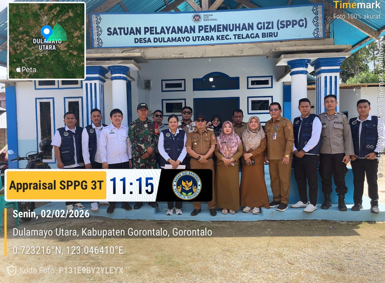 Dapur tersebut tergolong kategori Dapur wilayah 3T (Terpencil,Terluar,Terjauh) kini monitoring Appraisal sudah berjalan dua hari yang di pimpin langsung oleh koordinator kabupaten Gorontalo berserta jajaran dan didampingi Satgas kabupaten Gorontalo dalam hal Kadis pangan Hermanto F Asona S.TP,M.Si bersama jajaran TNI/Polri yakni Babinsa dan Babinkantibmas.